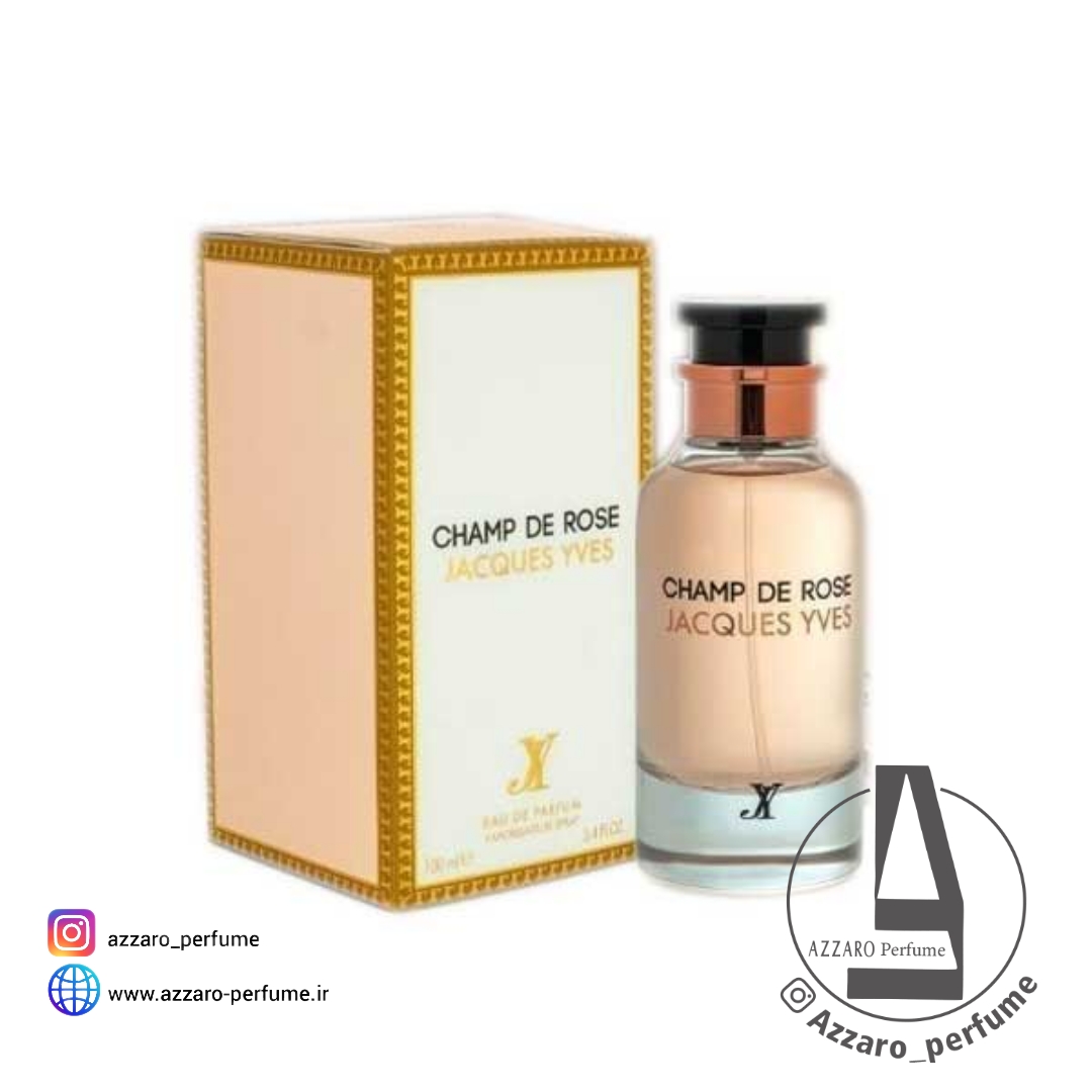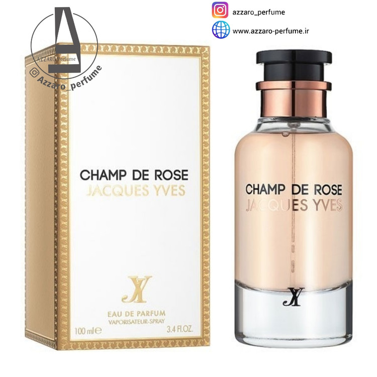 ادکلن زنانه فراگرنس ورد چمپ د رز جاکوز ایو(Champ de Rose Jacques Yves) شیرین و خنک همانند نوشیدن یک اسموتی میوه ای در مجاورت باغچه ای از گل رز است. این عطر که با الهام از عطر Rose des Vents Louis Vuitton توسط شرکت اماراتی فراگرنس ورد باز طراحی شده. ترکیبی از رایحه های میوه ای و پودری، چوبی، سبز، گلی و ادویهای است. این عطر ماندگار است وانتخاب خوبی برای دورهمی ها و مهمانی های رسمی روزهای بهار و تابستان است.
