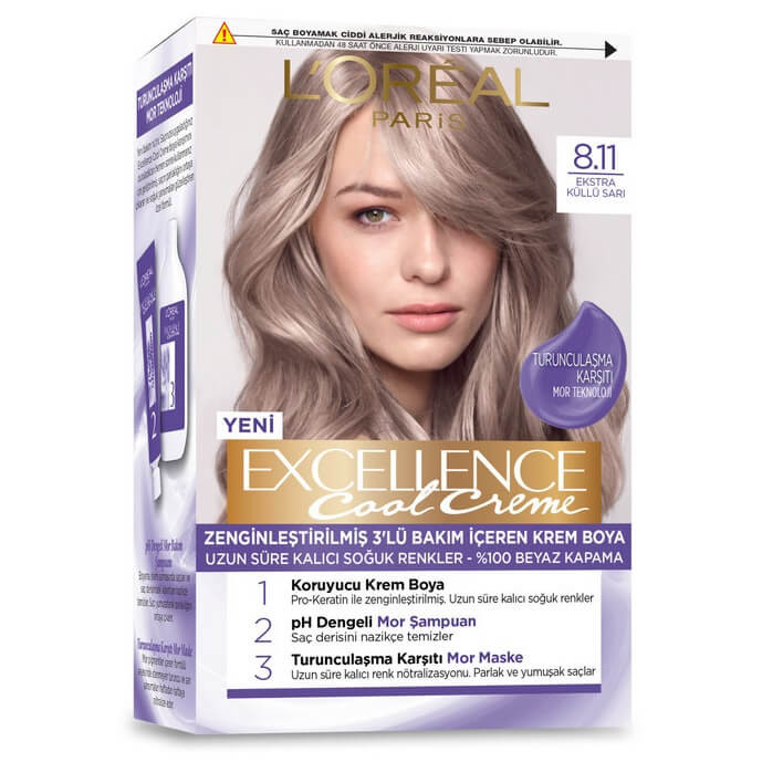 کیت رنگ مو لورآل مدل Excellence شماره 8.11 با پایه رنگ بلوند دودی بهترین گزینه برای افرادی به شمار می رود که به ایجاد رنگ زرد دودی در موهایشان علاقه دارند.