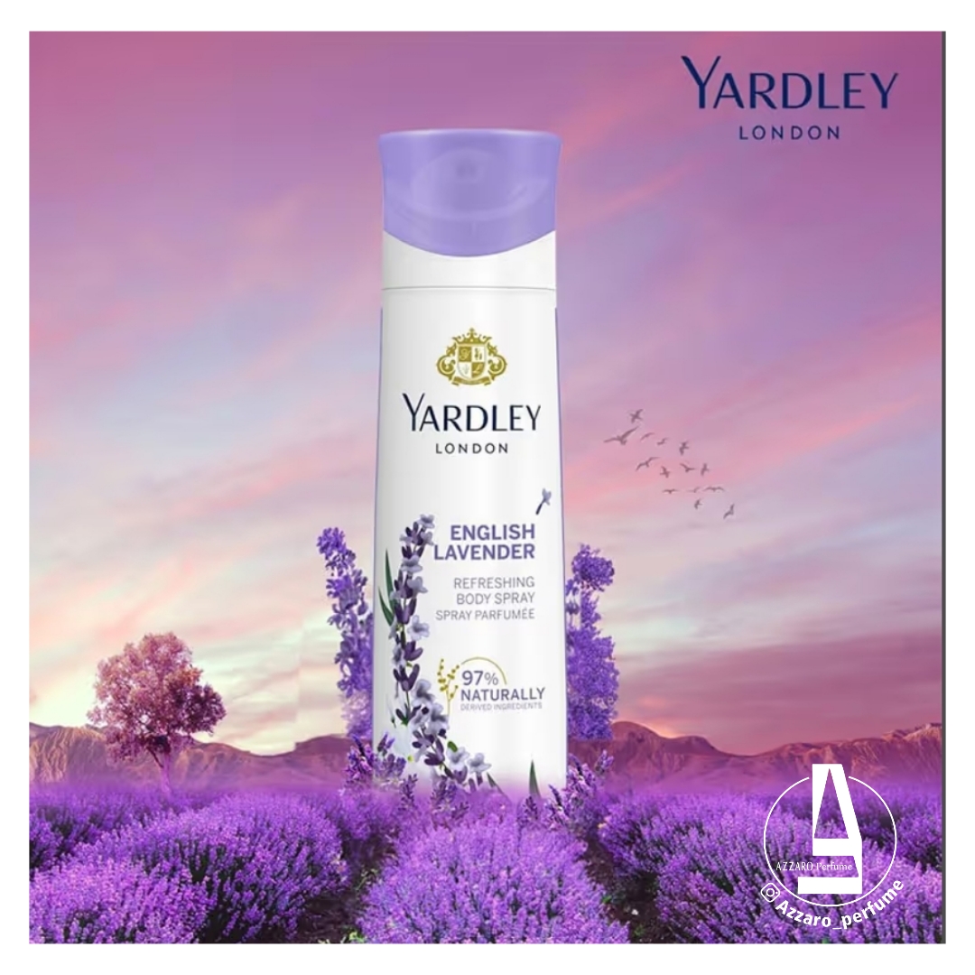 اسپری خوشبوکننده بدن لاوندر انگلیسی یاردلی Yardley English Lavender حاوی 97 درصد ترکیبات بدست آمده با منشاء طبیعی و دارای رایحه دلپذیر بدست آمده از لاوندر دست چین شده از باغ های انگلیسی با امضای یاردلی است و حس تازگی و آسودگی را در تمام طول روز به ارمغان می آورد. نت های اسپری یاردلی شامل لاوندر، رزماری، سدر، گل شمعدانی، دانه تونکا، مشک و گلسنگ است.