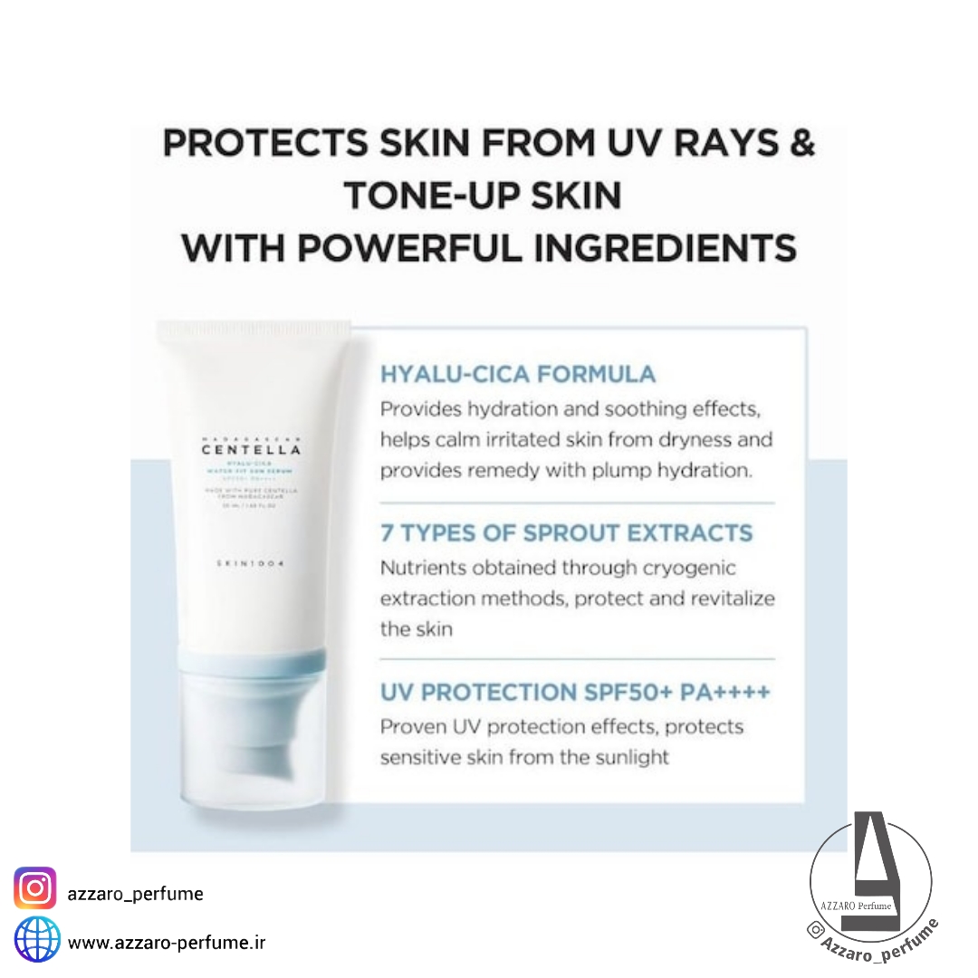 ضد آفتاب سنتلا از برند اسکین 1004 یک کرم ضد آفتاب قوی با +SPF50 و ++++PA است که از پوست در برابر اشعههای مخرب UV محافطت میکند. این محصول دارای بافت سرمی سبک و زود جذب است و احساس چربی و سنگینی روی پوست ایجاد نمیکند. علاوه بر آبرسانی و رطوبترسانی، تسکیندهنده و التیامبخش نیز میباشد و فینیش طبیعی روی پوست دارد؛ همچنین بدون ایجاد رد سفیدی پوستی صاف و یکدستی را برایتان به ارمغان میآورد. این محصول بینظیر، روشن کننده، ضدچروک و ضدحساسیت نیز میباشد و دارای فرمول هیالوسیکا میباشد که ترکیب منحصر به فردی از عصاره سنتلا آسیاتیکا و هیالورونیک اسید است که به ترتیب موجب التیام و آبرسانی پوست میشود.