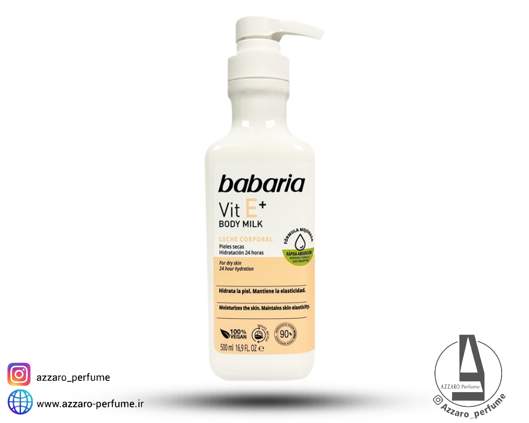 شیر بدن باباریا babaria ویتامین E مناسب پوست خشک حجم 500 میل