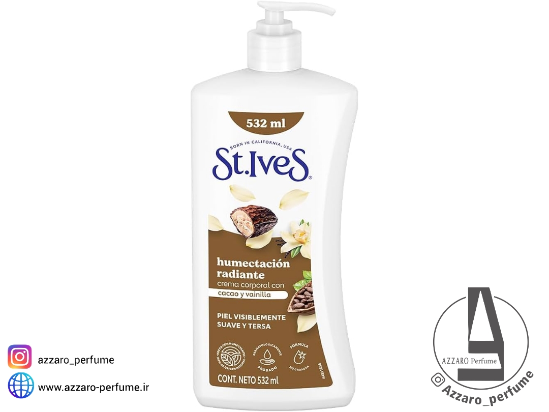 اگر به دنبال یک لوسیون خوشبو، مغذی و مناسب استفاده روزانه هستید، لوسیون بدن St. Ives کاکائو و وانیل انتخابی ایدئال است. این لوسیون با ترکیب کره کاکائوی طبیعی و عصاره وانیل، پوست را عمیقاً مرطوب کرده و حس نرمی و لطافت طولانیمدت به آن میبخشد. رایحه گرم و شیرین کاکائو و وانیل، تجربهای آرامبخش و لذتبخش ایجاد میکند و برای تمام فصول قابل استفاده است.