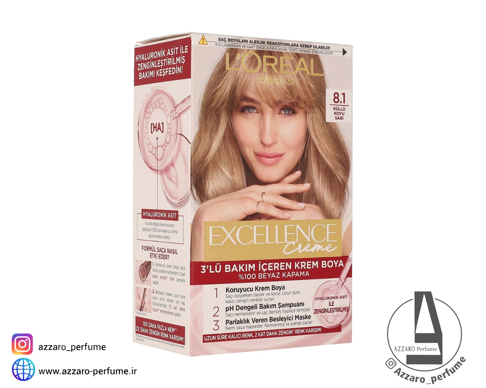 کیت رنگ مو L’Oréal Paris شماره 8.1 از سری EXCELLENCE با رنگ بلوند دودی روشن، یک رنگ موی دائمی با پوششدهی کامل و نتیجهای طبیعی و درخشان است. این رنگ مو با فرمولاسیون پیشرفته و سیستم مراقبت سهگانه لورآل، همزمان با رنگ کردن، از موها محافظت کرده و باعث نرمی، لطافت و استحکام آنها میشود.