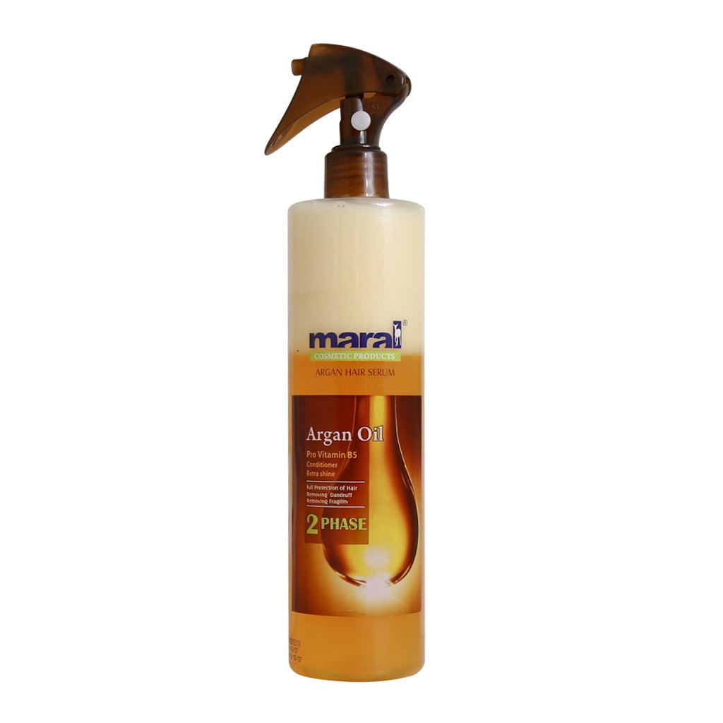 سرم مو دوفاز آرگان مارال به منظور محافظت از مو فرموله شده است و برای انواع مو به ویژه موهای خشک و آسیبدیده مناسب است. مو بر اثر رنگ، دکلره، مواد شیمایی، حرارت و دیگر عوامل آسیب میبیند و دچار خشکی، شکنندگی و حتی مو خوره نیز میشود. سرم دو فاز آرگان با فرمولاسیون ویژه خود ترکیبی از مایع و روغن آرگان است که با تکان دادن آن این دو فاز با هم ترکیب میشوند و سپس میتوانید روی موی خشک یا مرطوب خود استفاده کنید. فرم این محصول به شکل اسپری دو فاز است که استفاده از آن را بسیار راحتتر و سریعتر نموده است. این اسپری موجب تقویت مو، کمک به رفع موخوره، شفافیت، شادابی و استحکام ساقه مو میشود. همچنین پس از استفاده براقیت تارهای مو را افزایش داده و به آنها حجم نیز میدهد.