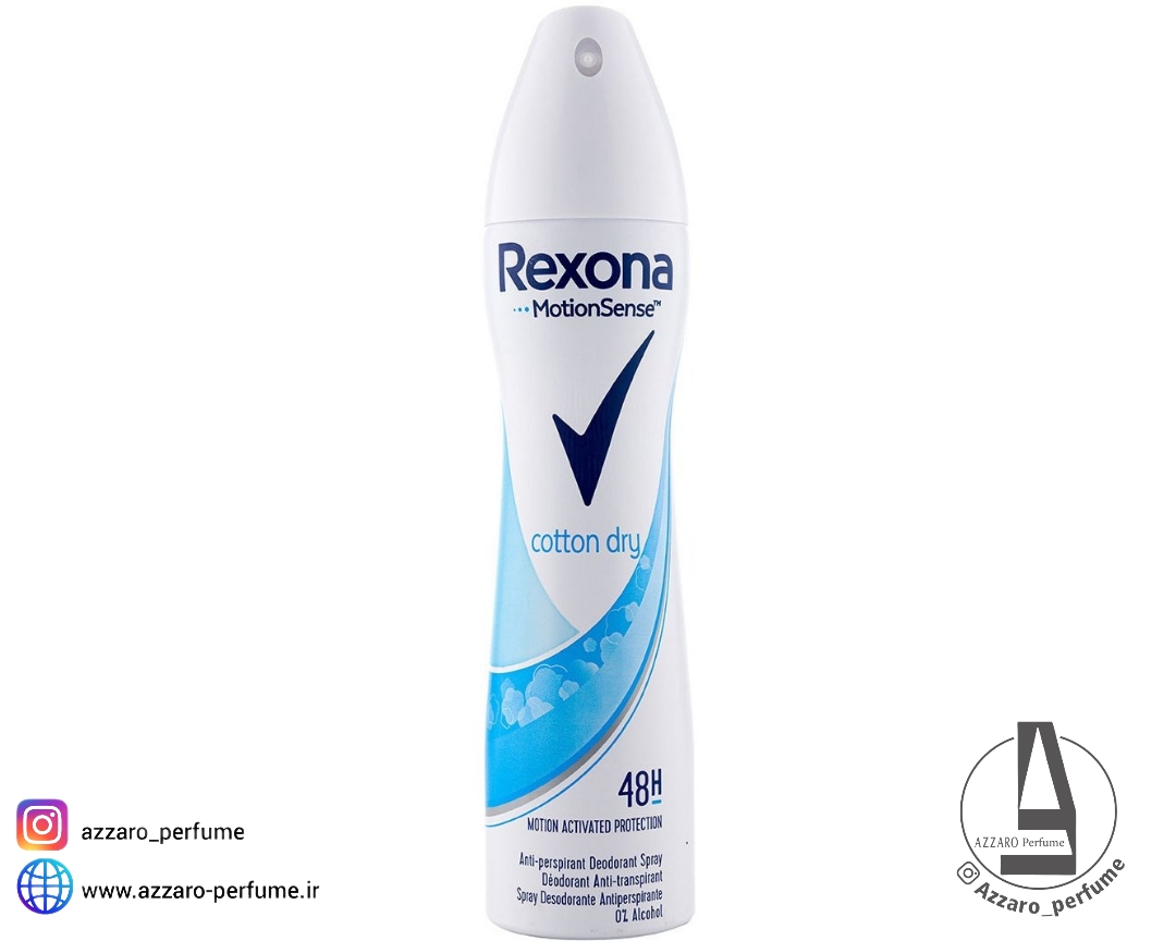 اسپری ضد تعریق زنانه رکسونا، کاتن درای با محافظت ۴۸ ساعته باعث جلوگیری از تعریق بیش از حد بدن خواهد شد و بادوام ترین محافظ در برابر رطوبت و بوی نامطبوع زیر بغل محسوب می گردد. اسپری ضد تعریق رکسونا با فناوری جدید Motion sense مناسب افرادی است که فعالیت بدنی بالایی دارند. فرمولاسیون محصولات ضد تعریق رکسونا مناسب هر نوع پوستی می باشد.